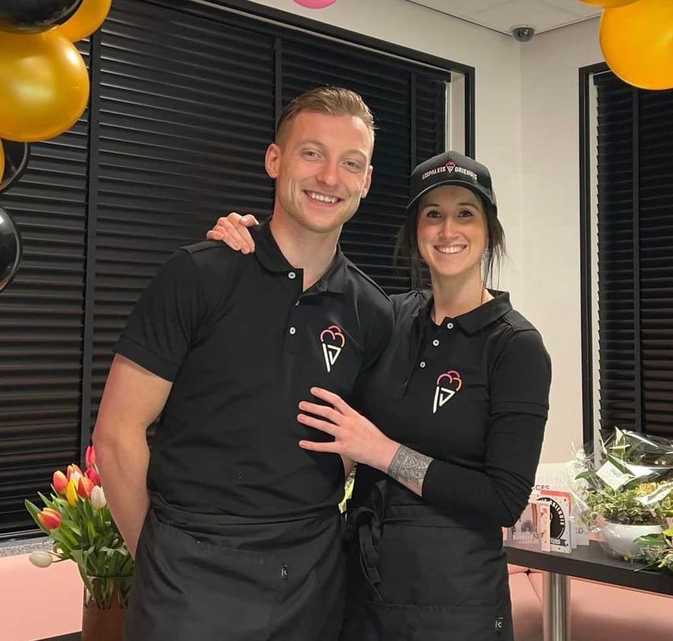 Sinds de start in 2022 zijn de rollen goed verdeeld in de zaak. Adrian is voornamelijk bezig met ijsdraaien en Karol is meer op de voorgrond te vinden achter de vitrine en bij de klanten.